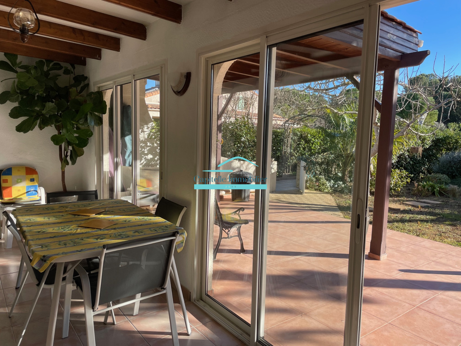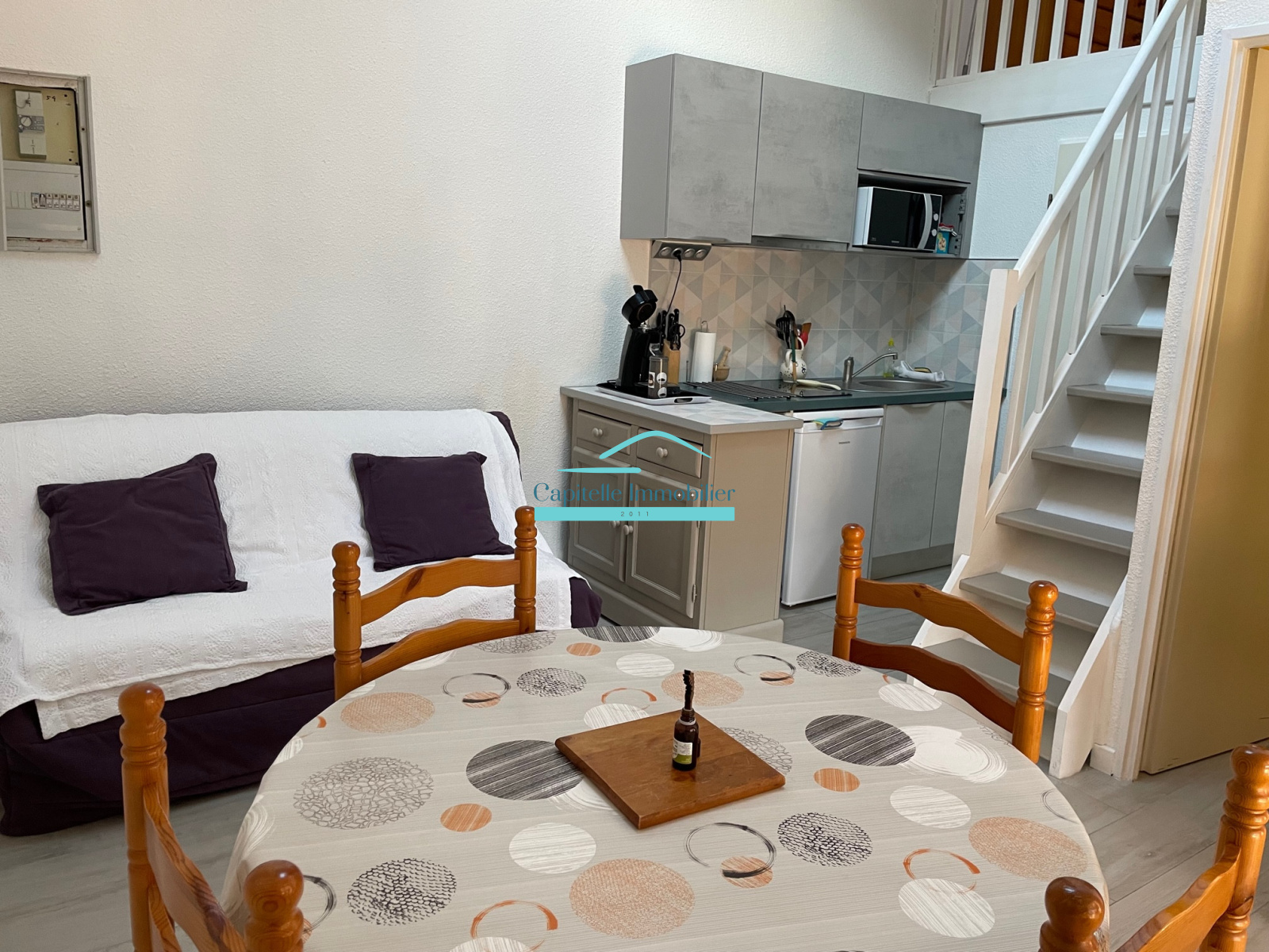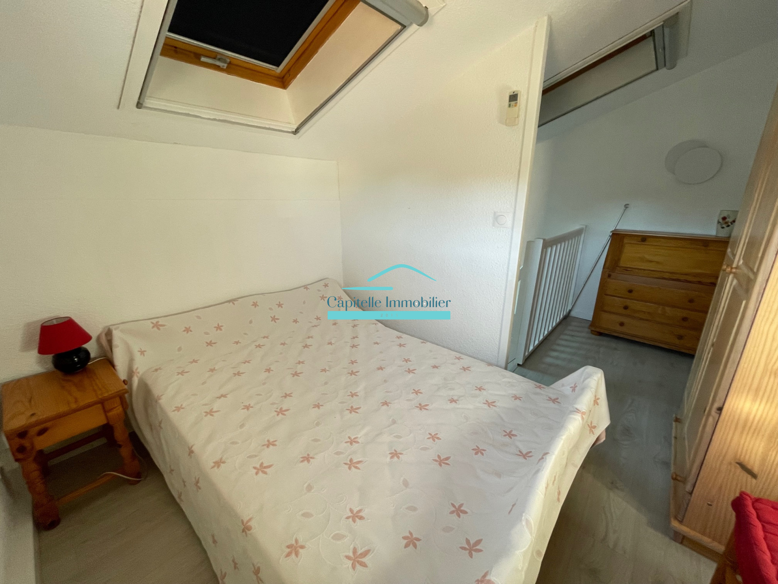 LOCATION SAISONNIERE à Vic la Gardiole, « Résidence Le Clos de Vic » , Villa T3, d'environ 50 m2 équipée pour 4 personnes comprenant un salon avec BZ, cuisine équipée, salle d'eau, wc, une chambre avec lit en 140, mezzanine avec lit en 140. dans la véranda vous trouverez table et chaises. Côté jardin, vous pourrez profitez du soleil et des transats (2), barbecue à disposition. la maison est équipée d'une climatisation.