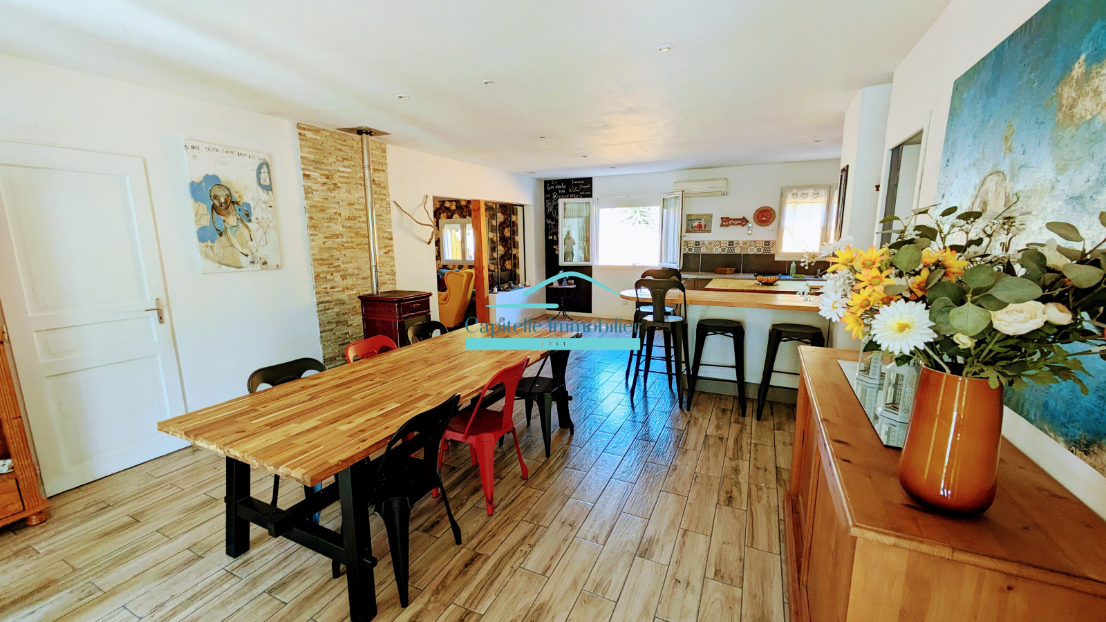 En Exclusivité : A Mireval belle villa de plain-pied d’environ 110m² composée d’une grande pièce à vivre de 50 m² avec cuisine Américaine, salle à manger et salon. 3 chambres lumineuses, et le petit plus un bureau avec mezzanine et un coin cellier. Une véranda donnant sur la piscine et son jardin. Le tout sur un terrain de 450 m² avec une cuisine d’été fermée, terrasse couverte. Un garage, un abri de jardin et cabanon sont prévu pour optimiser le rangement. Prestations de qualité, climatisation réversible, poêle à granule, fenêtres pvc, portail électrique, volets roulants électriques. Aucuns travaux à prévoir.