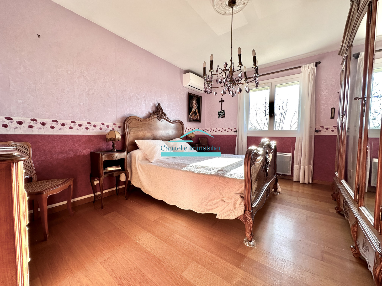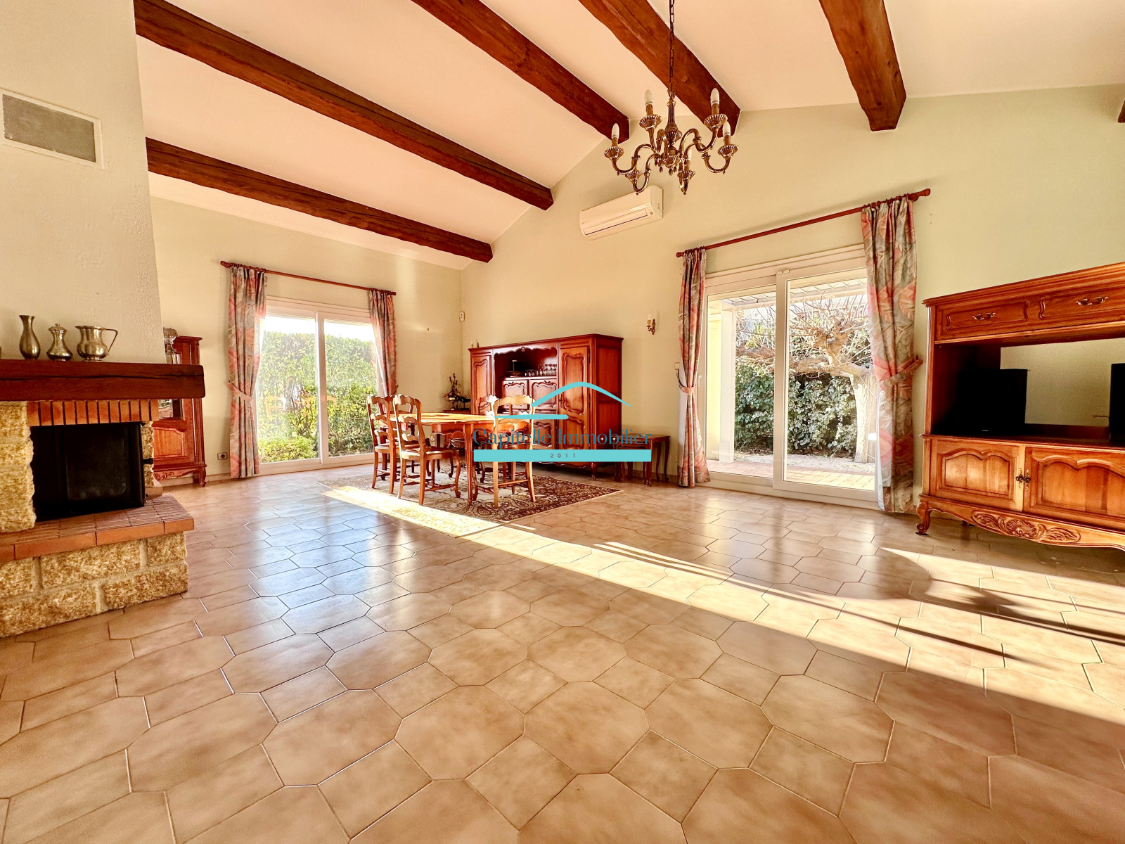 Menuiseries récentes en pvc avec volets roulants éléctriques, climatisation du salon et d'une chambre.