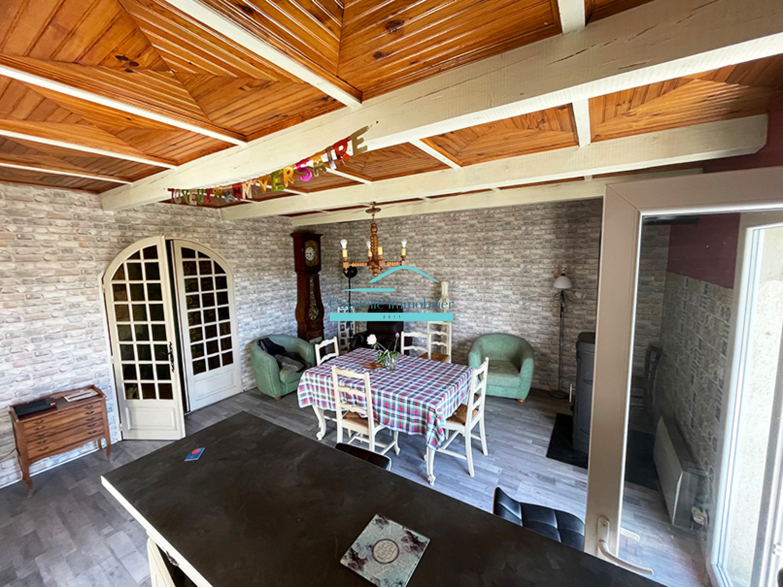 La maison se compose d'un espace de vie avec cuisine ouverte, une véranda,quatre grandes chambres de 15 à 20 m2 dont une suite parentale ,deux salles d'eau, deux toilettes, deux celliers de 25 m2 ,une cuisine supplémentaire pouvant servir de cuicine d'été.