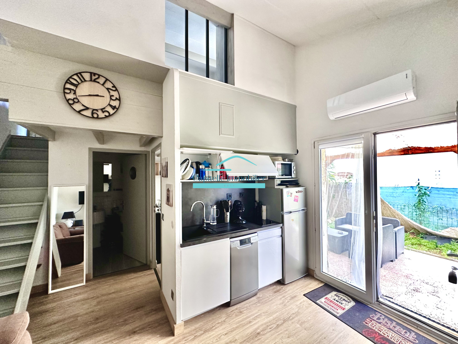 Exclusivité : A Vic la Gardiole belle villa T3 comprenant un espace de vie avec cuisine aménagée avec climatisation reversible, une petite chambre en rez-de-chaussée, une salle d'eau avec toilette, une chambre en mezzanine. Le jardin exposé ouest possède un petit cabanon. Une place de parking privative complète ce bien.