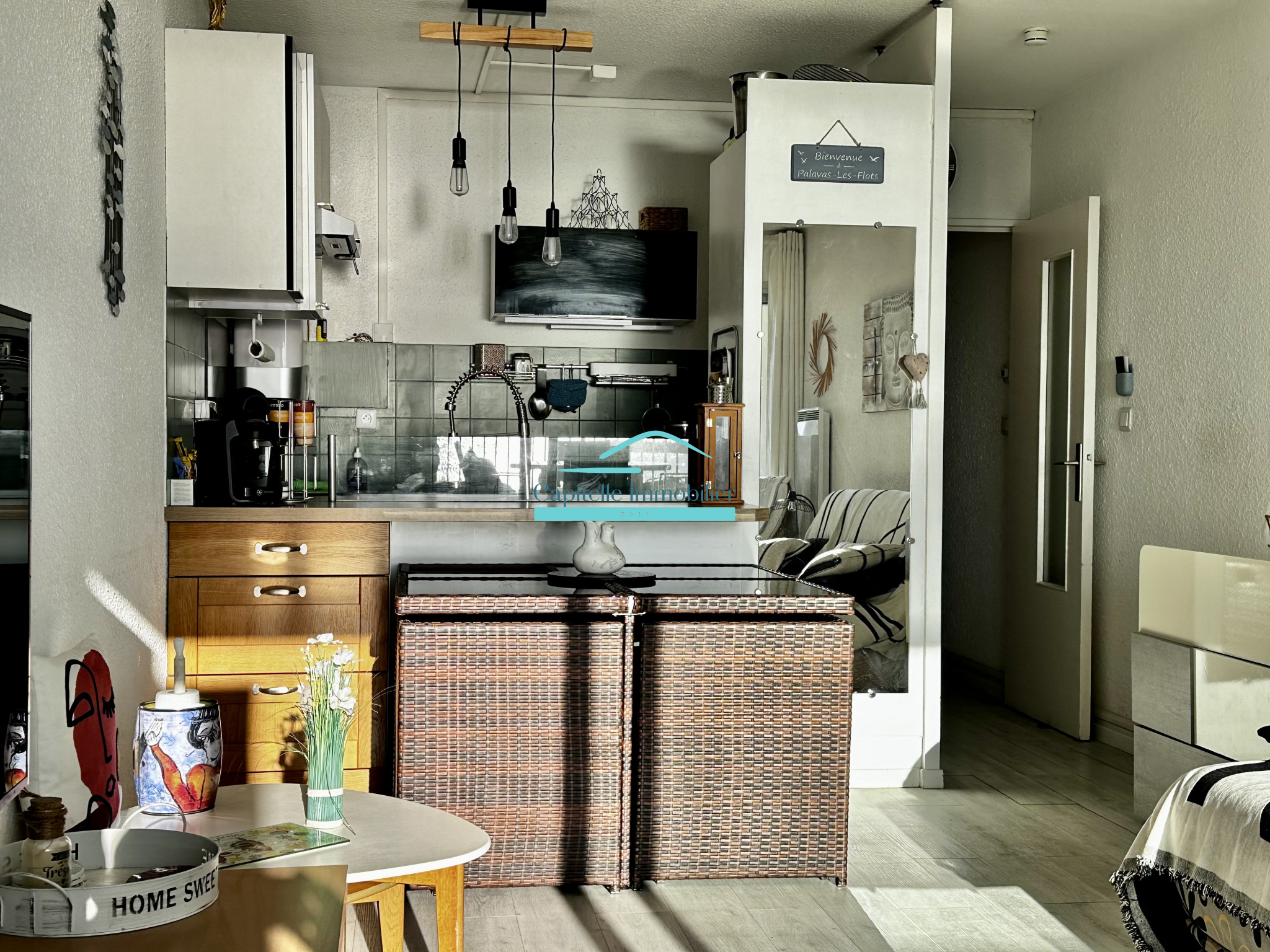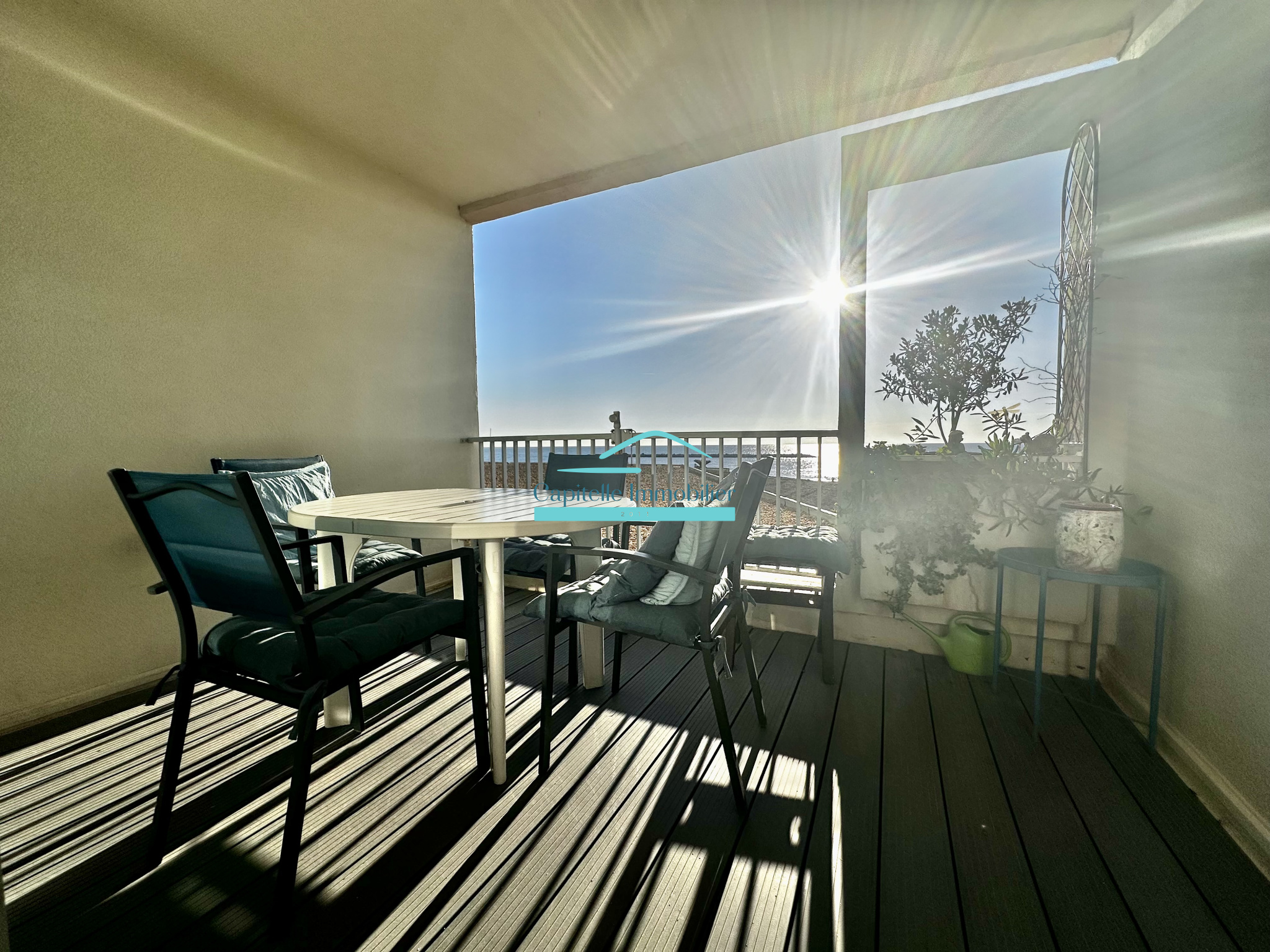 En exclusivité chez Capitelle Immobilier , à Palavas-Les-Flots , en 1er ligne face à la mer , magnifique appartement d'environ 40m2 composé d'un espace de vie donnant sur une terrasse avec vue direct sur les plages de la méditerranée , une salle d'eau , une chambre ( cabine) , cave et place de parking privative.