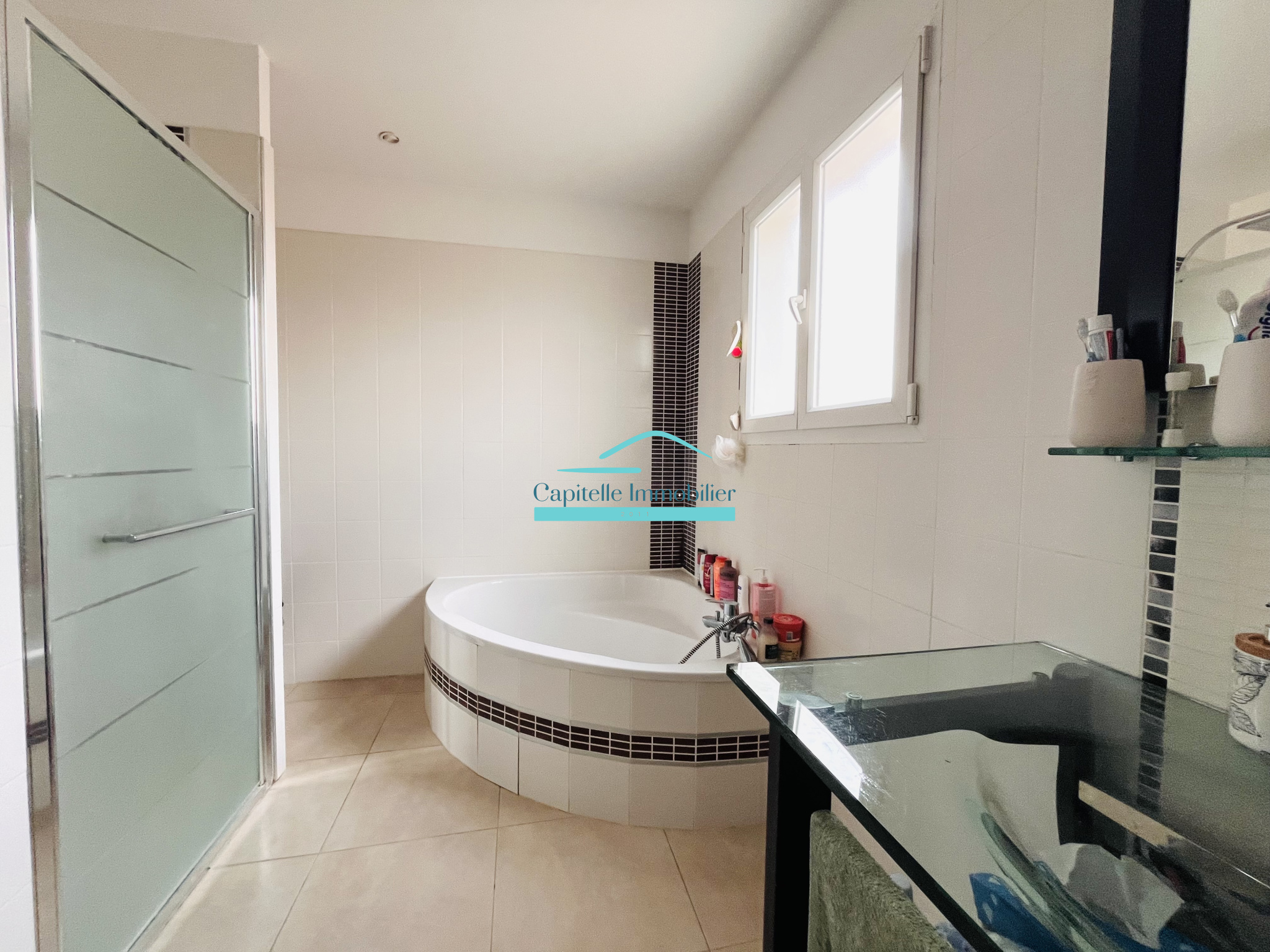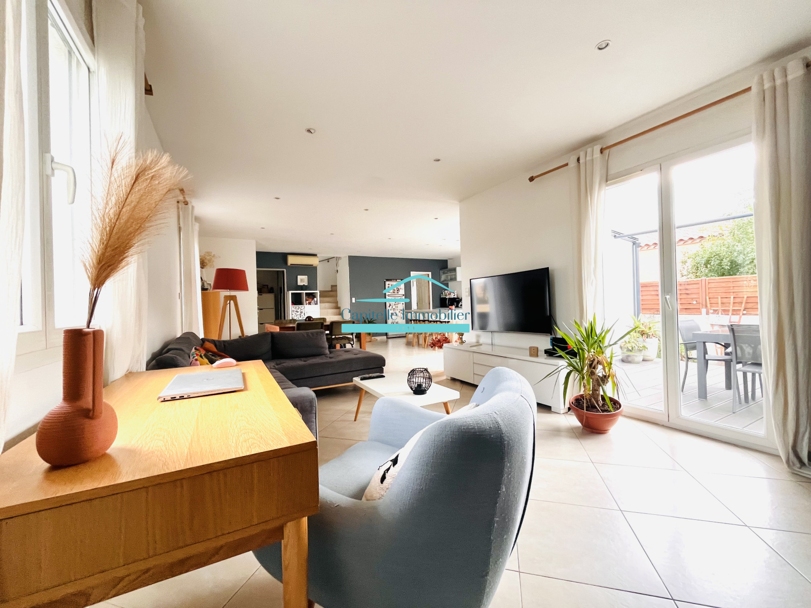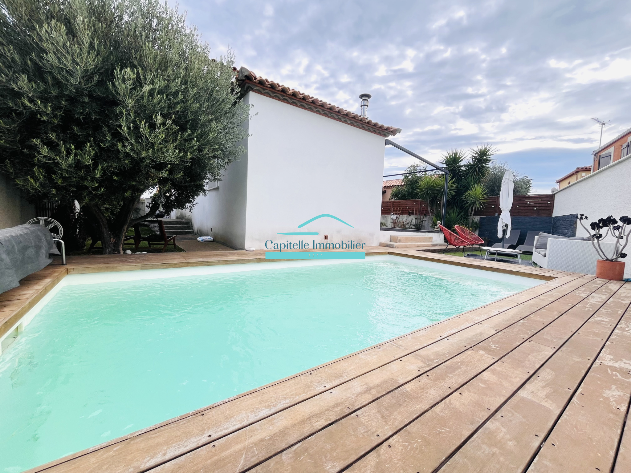 CAPITELLE IMMOBILIER Frontignan vous propose cette maison lumineuse sur Frontignan, elle se compose au rez-de-chaussée : une entrée avec placard et toilette, une grande pièce de vie de 55 m2 avec son poêle à granules et 2 belles ouvertures sur la terrasse, un cellier attenant à la cuisine et un grand garage.
