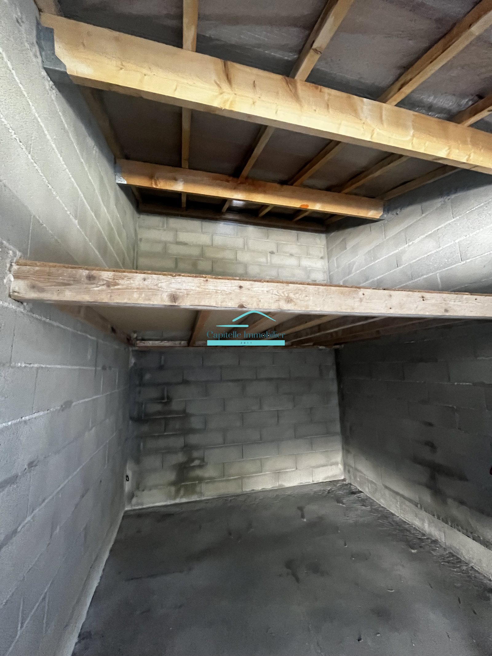 Capitelle immobilier Frontignan vous propose ce garage de 12,50 m2 avec une mezzanine.