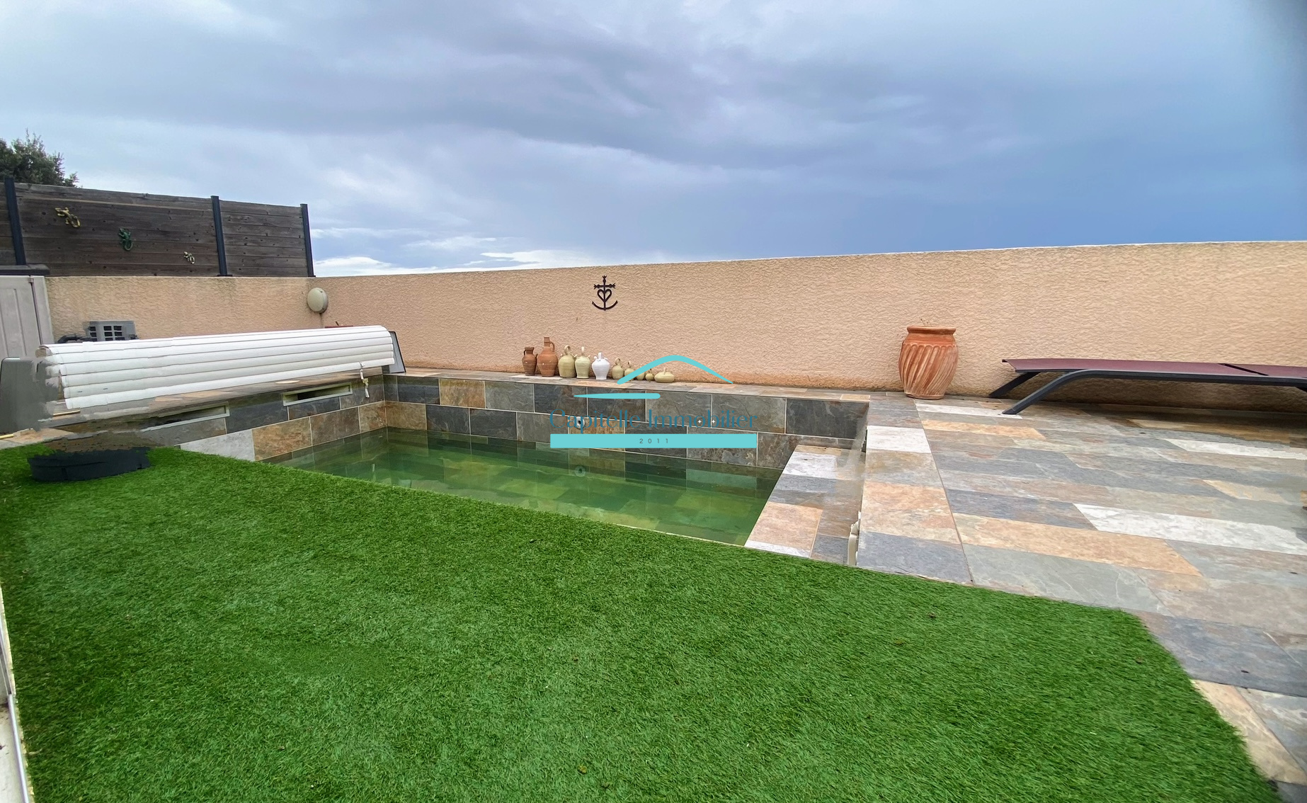 Au rez-de-chaussée, vous découvrirez une spacieuse pièce de vie d'environ 60m² baignée de lumière, avec cuisine américaine neuve moderne et entièrement équipée, ouverte sur une véranda de 19 m² donnant directement sur la piscine au carrelage de Bali — un lieu idéal pour partager des repas et des moments conviviaux en toute sérénité été comme hiver.